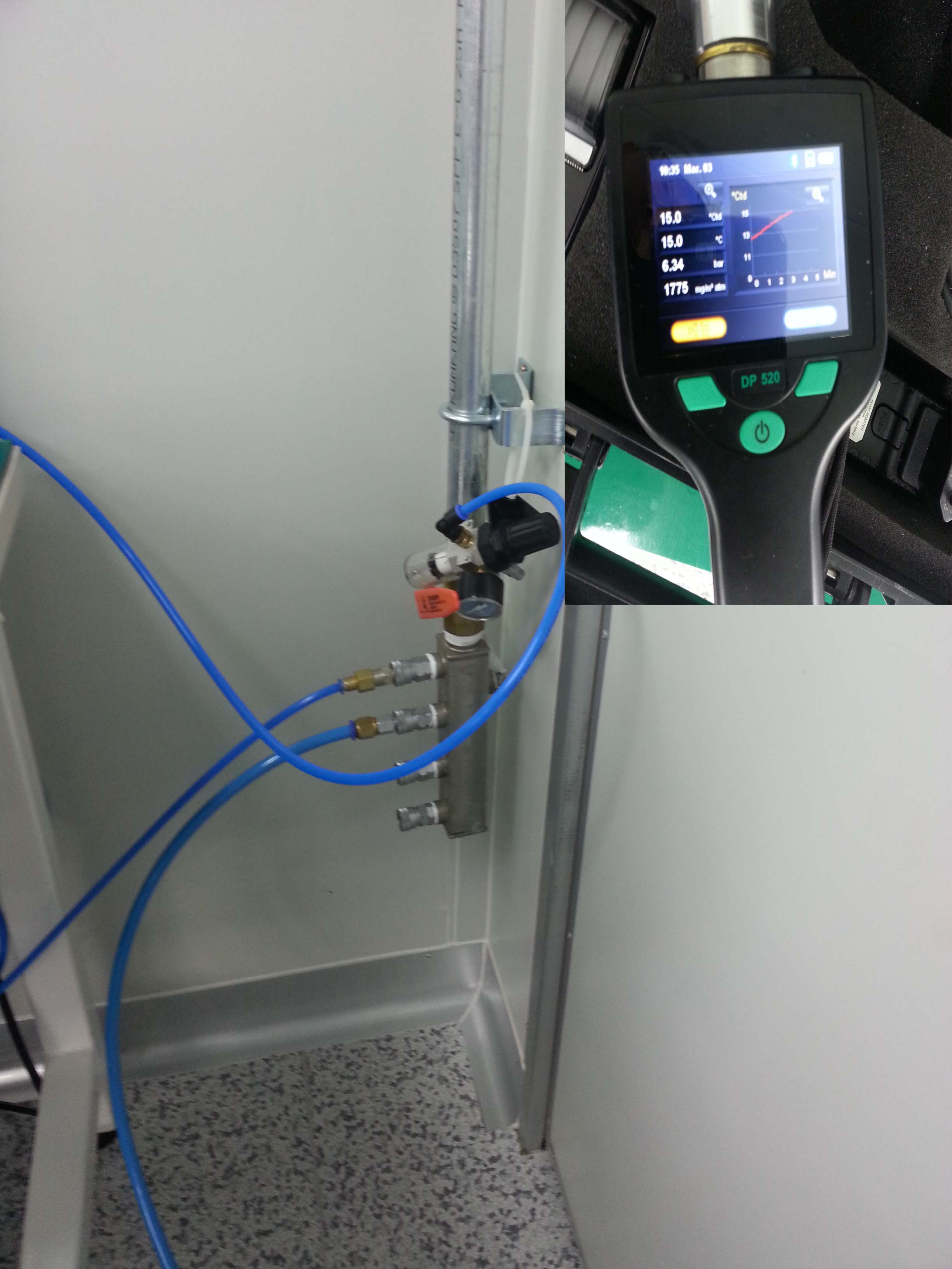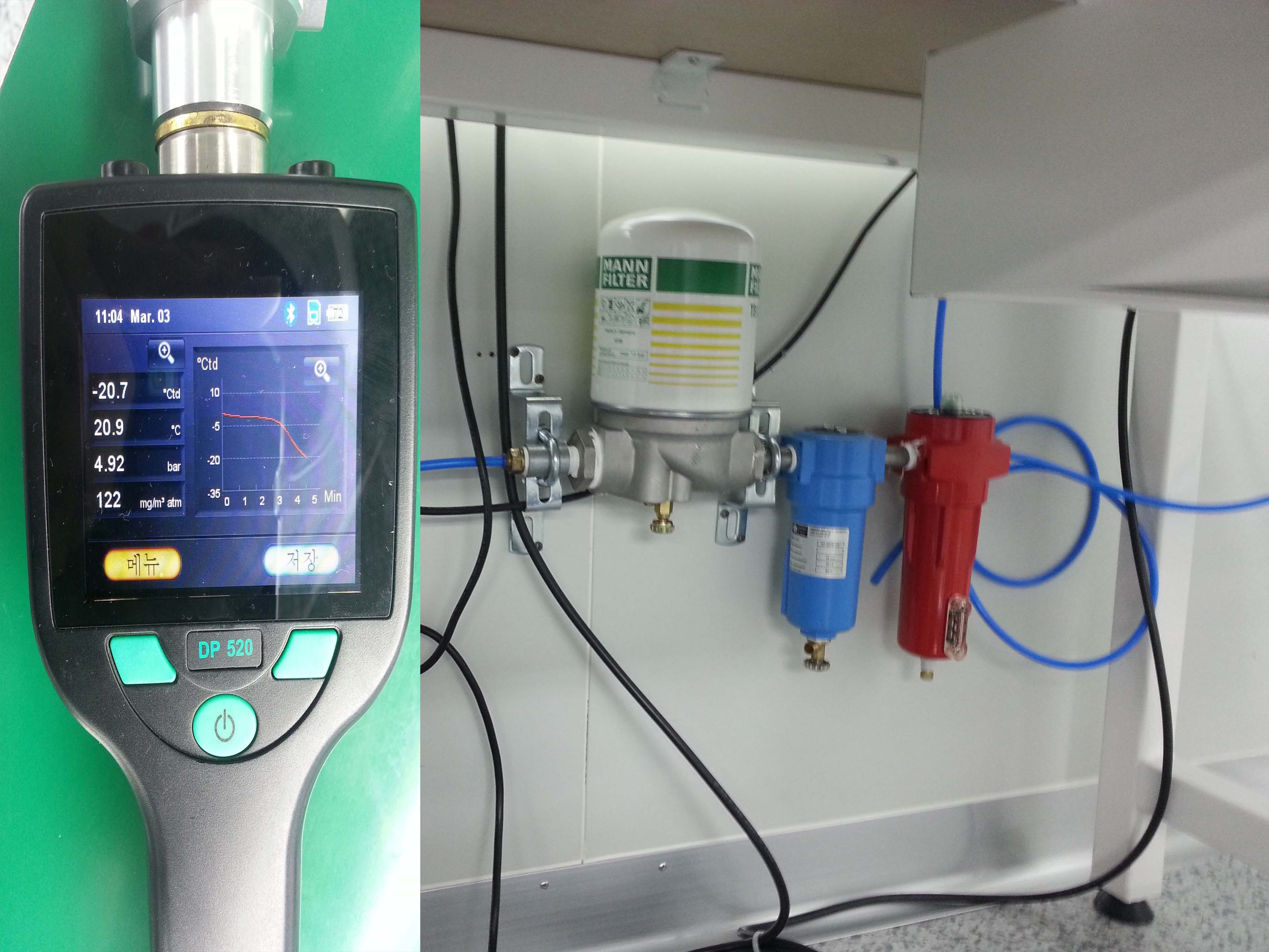 콤프레샤 룸에서 부터 생산현장 말단에서 이슬점 측정함 : 압력하 이슬점 15도 수분량 1,775mg/m3