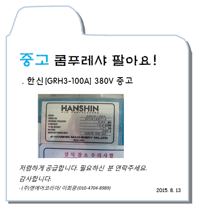 한신100마력 중고 380V 싸게 팔아요